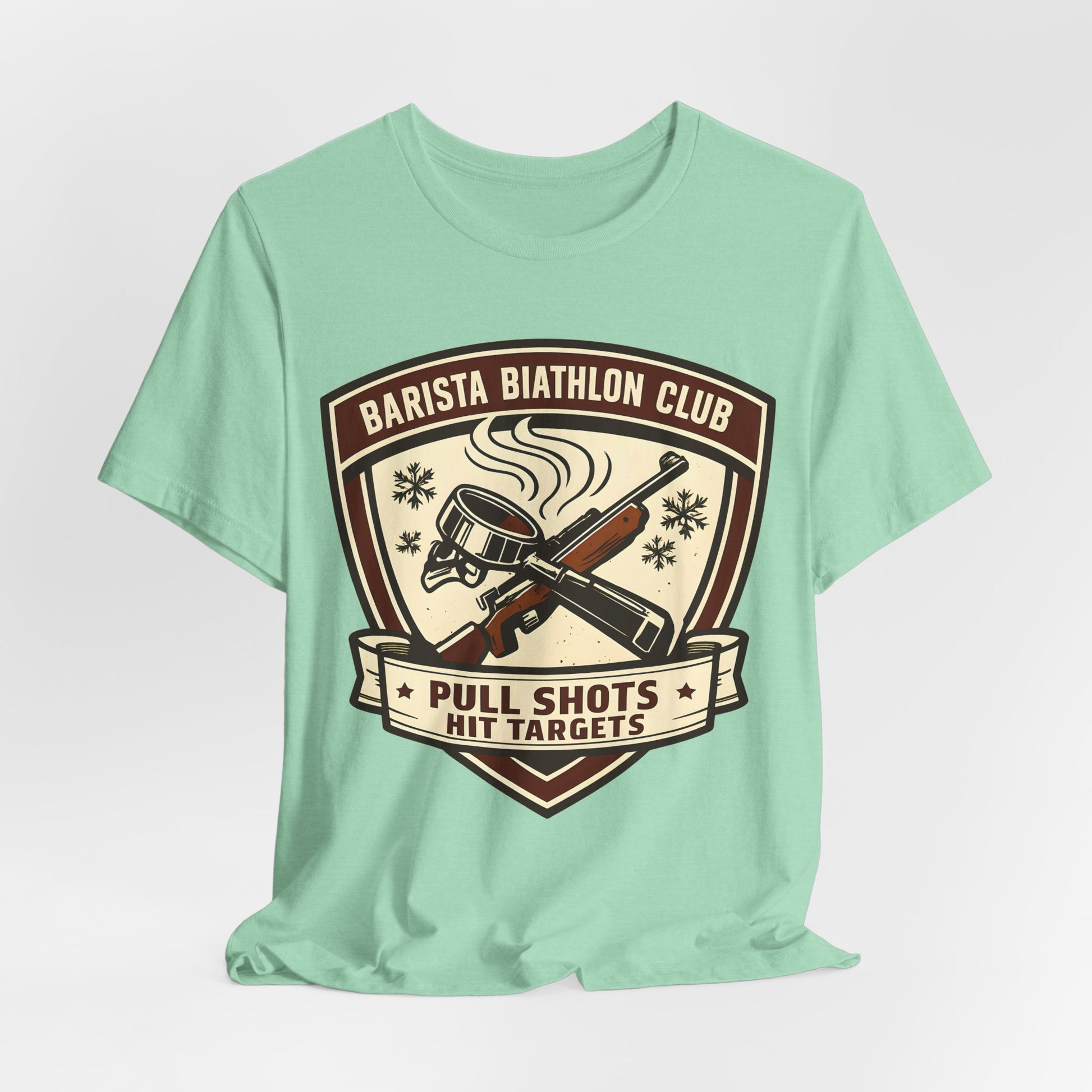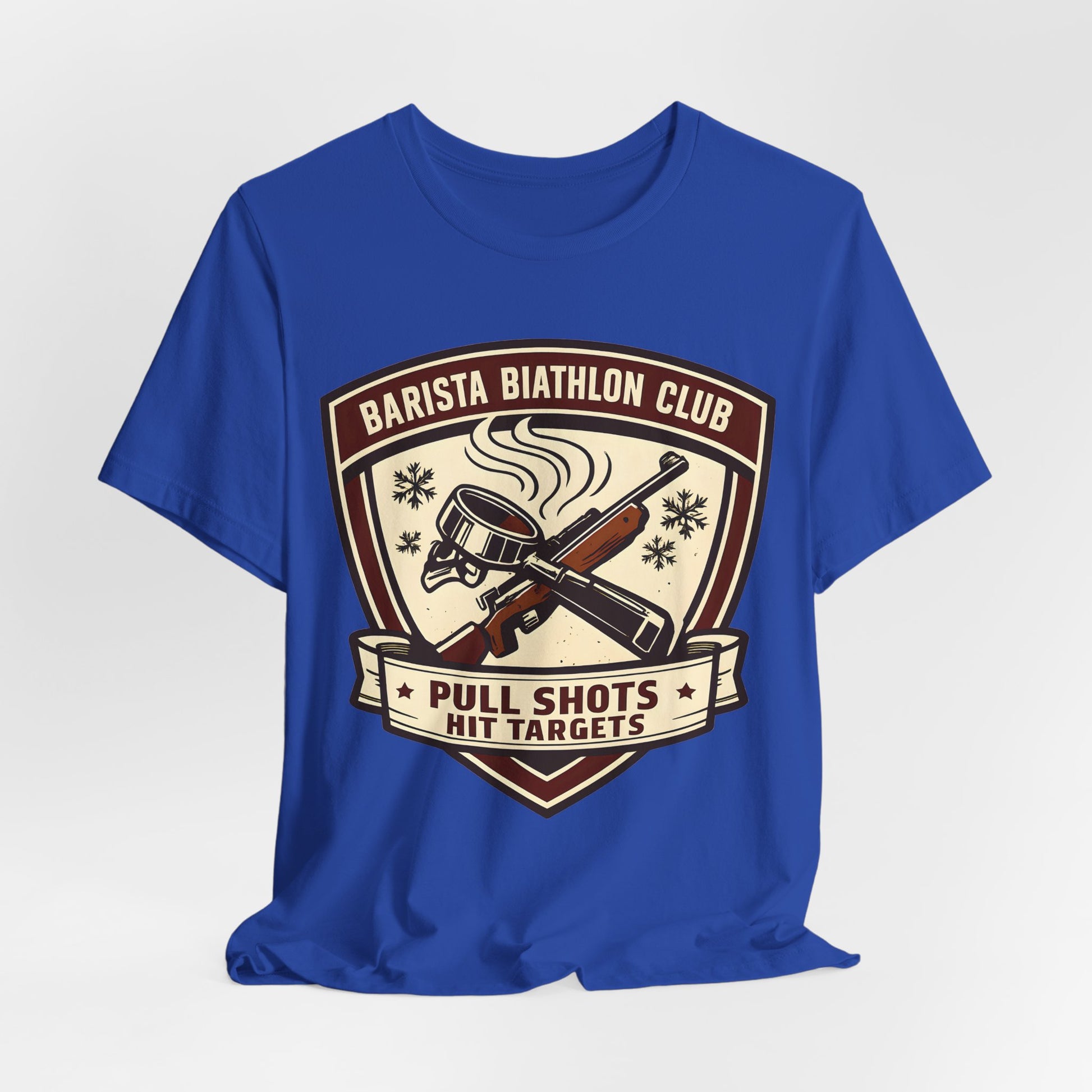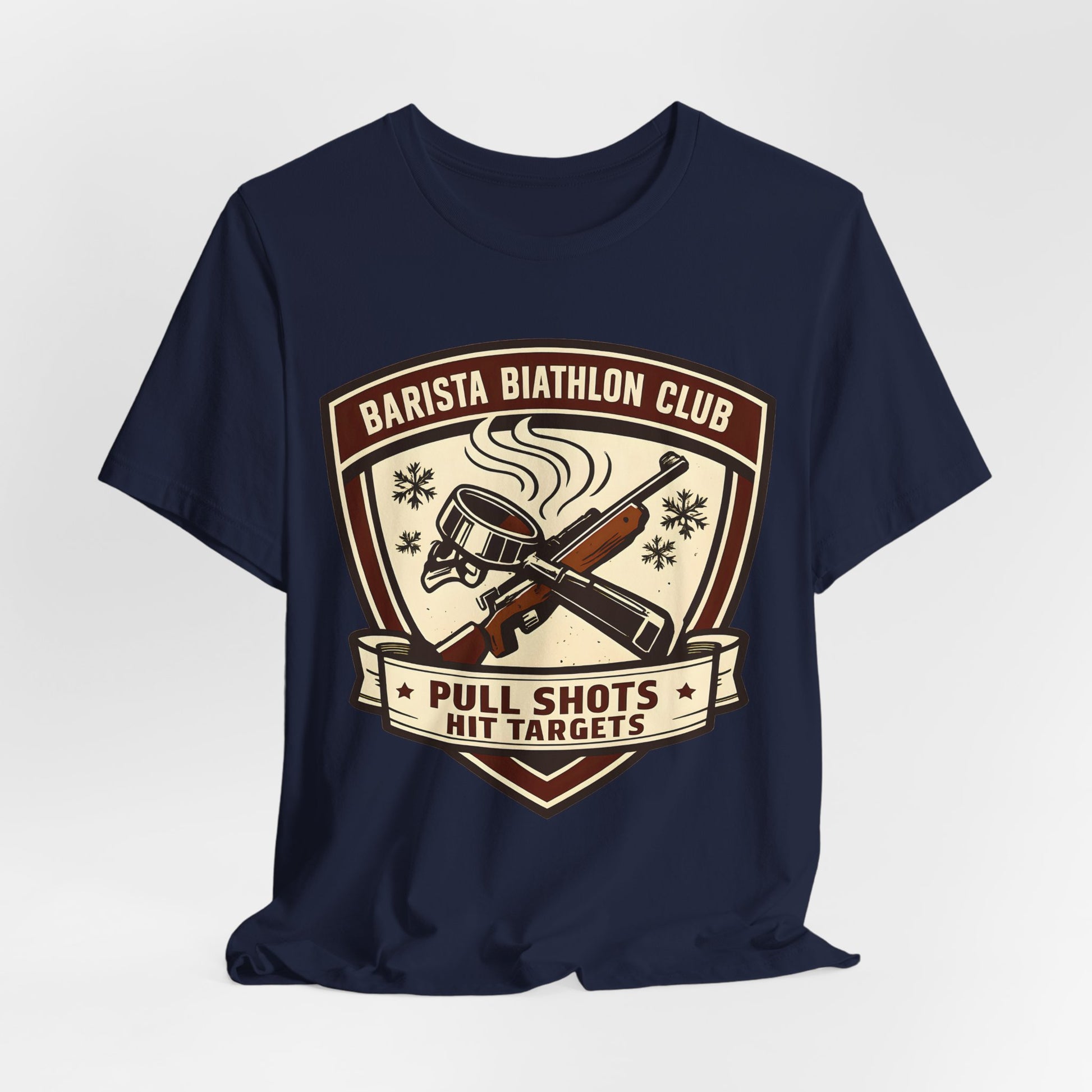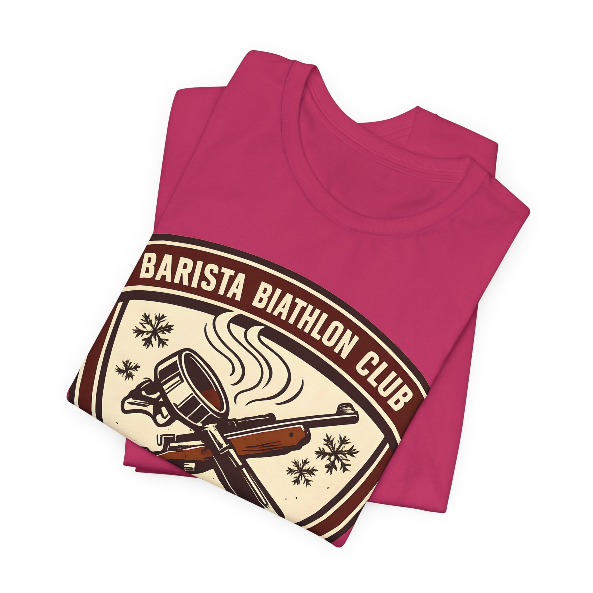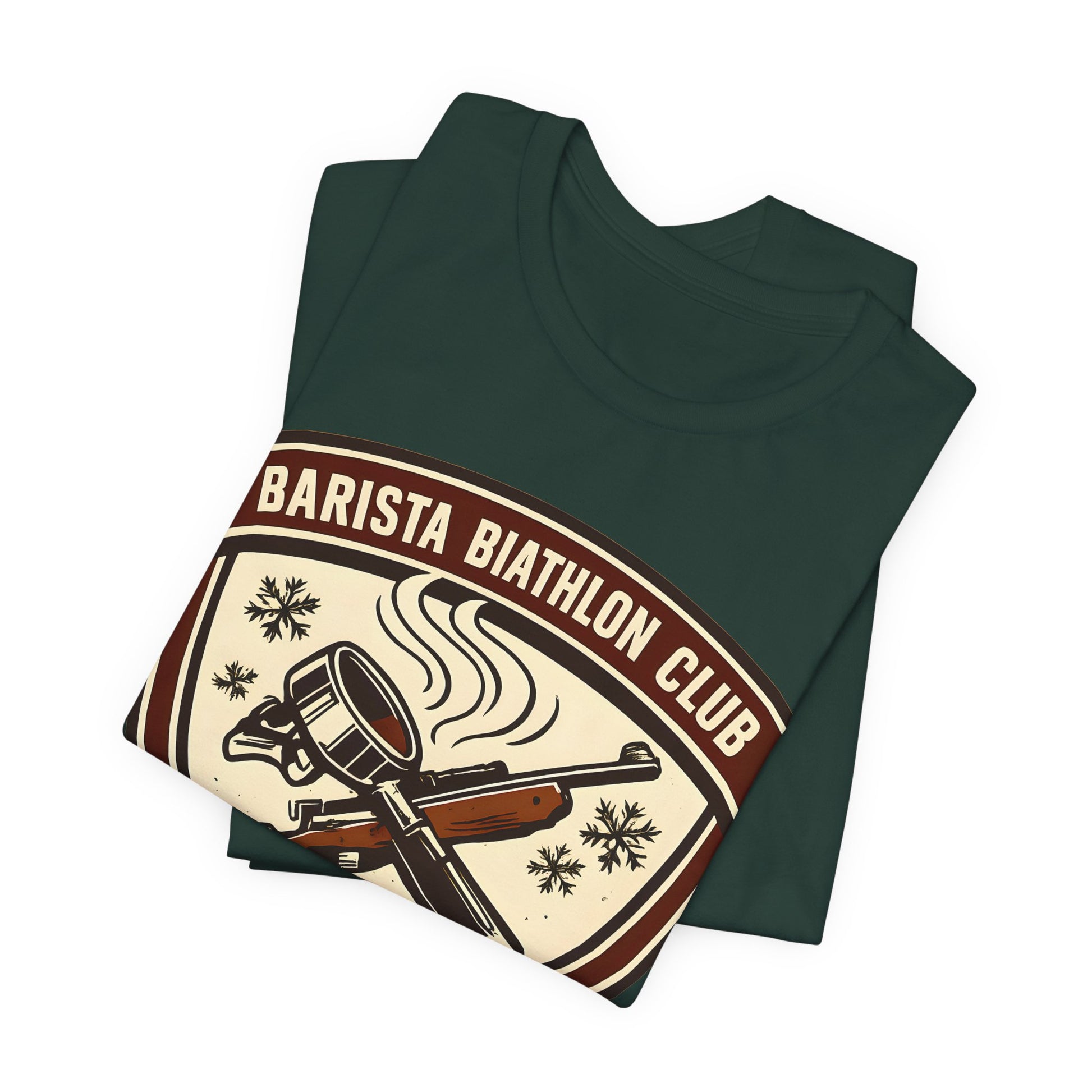 Premium quality t-shirt featuring Barista Biathlon Club design. Perfect for Italian culture enthusiasts, winter sports fans, and anyone with a sense of humor about international sporting events.