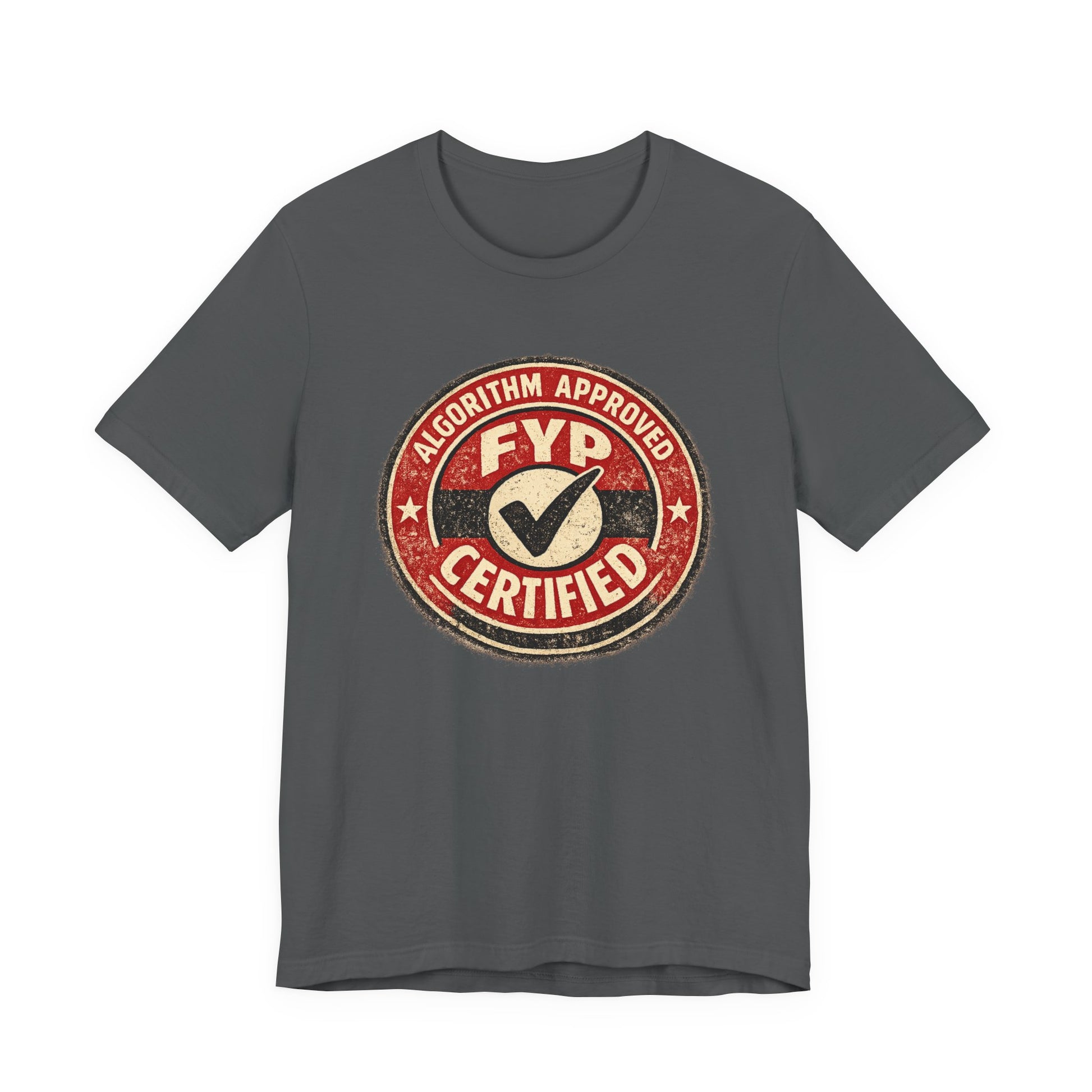 Vintage-inspired algorithm approval badge meets modern social media reality in this distressed certification seal design. Features weathered red and black stamp aesthetic reminiscent of 1940s quality control badges, reimagined for the For You Page generation. Perfect for content creators, social media managers, and anyone who's mastered the art of algorithmic engagement.