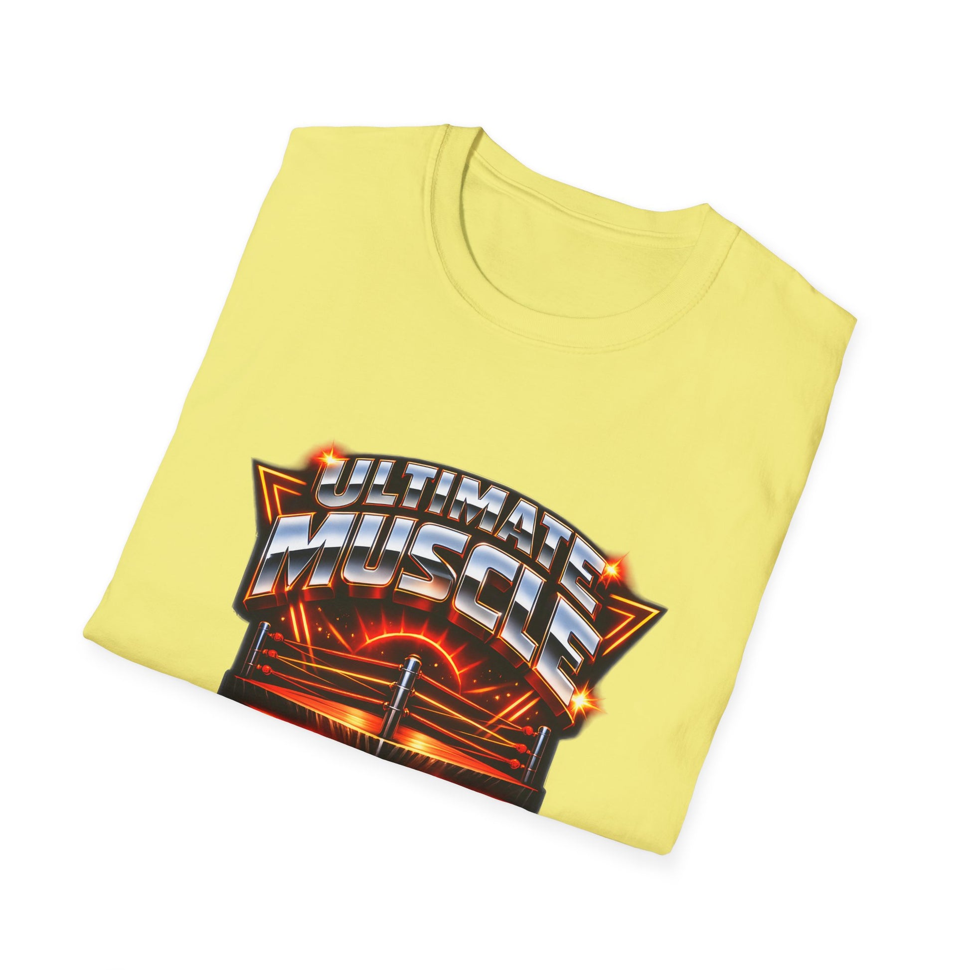 Epic wrestling logo featuring a blazing arena ring with chrome text and fiery effects. Perfect for wrestling fans and combat sports enthusiasts.