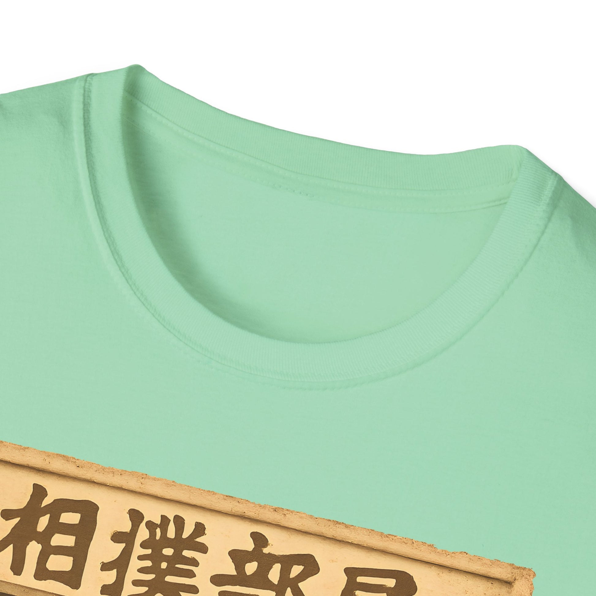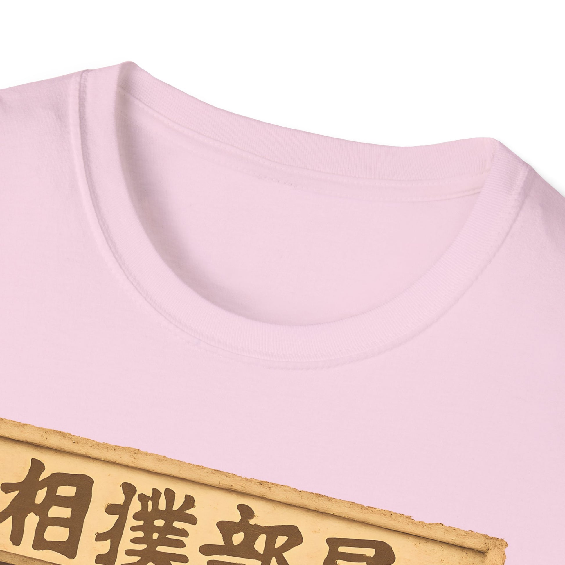 Classic sepia-toned illustration of traditional Japanese sumo wrestlers in their training dojo with authentic Japanese characters.